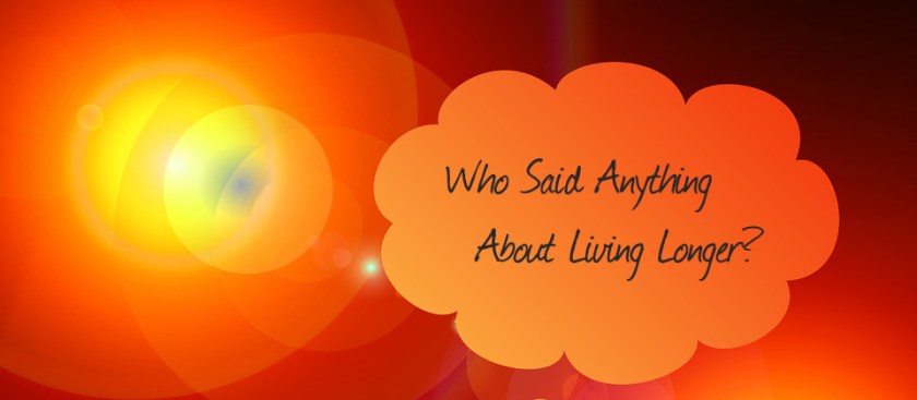 1. I hear you, Joan, loud and clear. I also agree with you 100%; I would not want to live ‘longer’ unless it was with better health, both in body and mind, from that which is currently the norm.