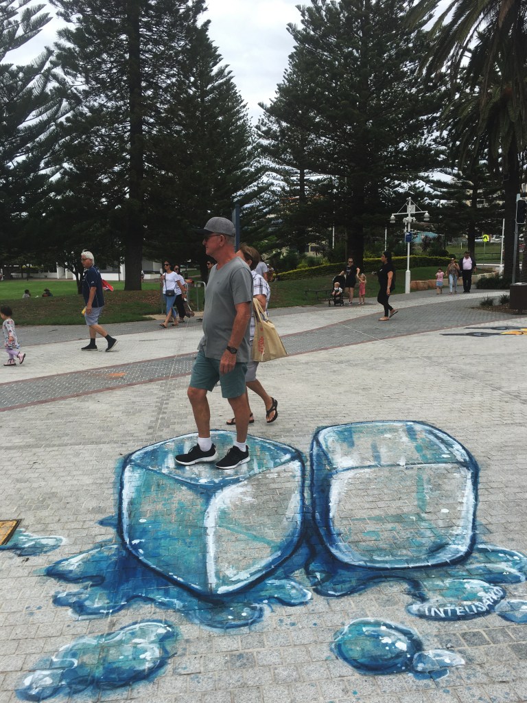 The mission was to capture images; images that first came to light a matter of days past. You see, Dear Ones, our dearest and her dearest Keith had, whilst on a day’s outing, come across an artist painting upon the ground. To be more specific, Dear Hearts; the artist was one of a number of artists engaged in the beautification and embellishment of the pavements belonging to one of Australia’s seaside towns.